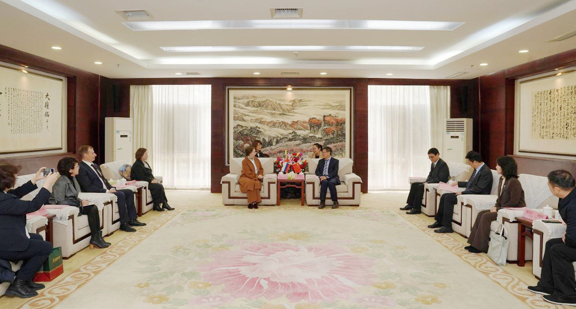 陈芬儿对俄罗斯萨哈(雅库特)共和国政府代表团的到访表示欢迎,并简要介绍了学校在人才培养、科学研究、国际合作等方面的基本情况与办学特色。他指出,学校高度重视与俄罗斯教育科研机构的交流合作,萨哈(雅库特)共和国资源富集、文化独特。希望以此次访问为契机,与北极国立文化艺术学院进一步拓展合作领域,深化在人才培养、学术研究、文化艺术交流等方面的合作,共同为促进中俄人文交流与地区发展作出积极贡献。